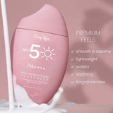 Experience the Fairy Skin Premium Brightening Sunscreen with its 0% whitecast, non-heavy, and non-sticky formulation. The lightweight texture offers an instant tone-up effect, along with hydrating benefits and intense whitening for a comprehensive skincare solution.